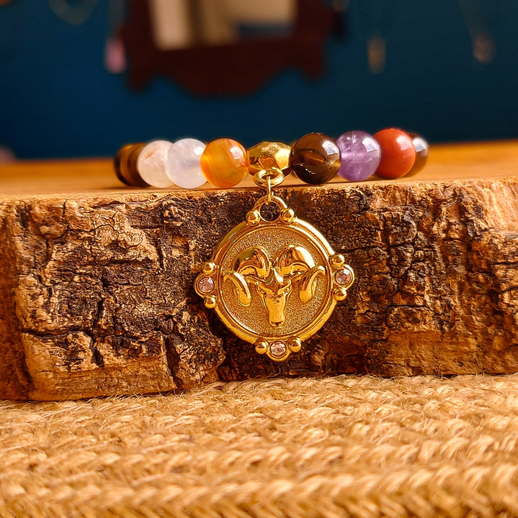 A Pulseira Áries foi desenvolvida para ajudar arianos a canalizar sua força natural com propósito, mantendo o equilíbrio emocional sem perder a chama da iniciativa.